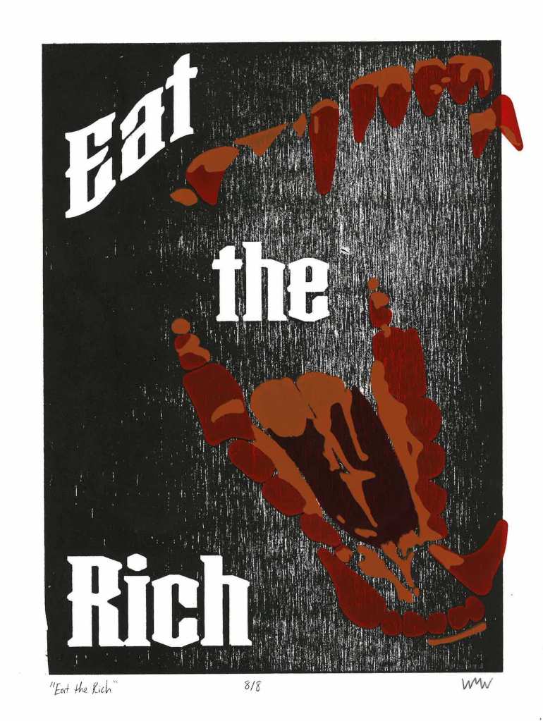 Eat the Rich (print) ← Previous Next → Woodcut & Screenprint by Winnie Weninger @artful_winnie Fall 2025Feeding a Community – no. 13teeth & RoadkillIndustrial & Urban Agriculture in the American MidwestFix Your Hearts or DieFeeding & Eating Disorder ResourcesMr. Ben’s MagicEat the RichEpitome: BlankTNM Interview – Zero Placechela’s handwritingGrocery DressRecipe: Easy Pumpkin MuffinsRecipe: Pasta e FagioliRecipe: Honey Sesame ChickenRecipe: Evil BurritosRecipe: Lon’s Italian SandwichRecipe: Lentil Tacos with Quick Jalapeño PickleEat Your PoetryRecipe: Ice Cream for BreakfastRecipe: Palestinian HummusRecipe: Taboon FlatbreadDO NOT AVERT YOUR EYESCommunity Resources – Fall ’25THIS – Fall’25James St. James Sayz…Distro Page!Back Page! Eat the Rich