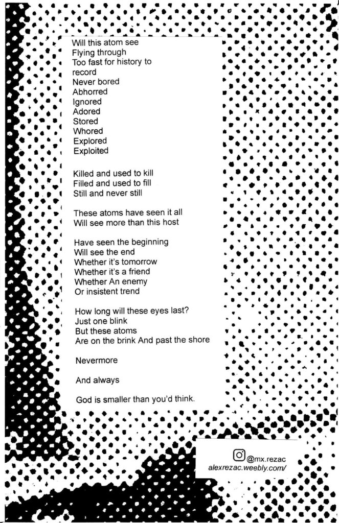 Neither Created Nor Destroyed ← Previous Next → Alex Rezac @mx.rezacalexrezac.weebly.com Spring 2023BG Issue – no. 08Tara BoothThe 8″ Spike of ParanoiaDirty Eddiei would killIt’s Only LifeTayler Krabbenhoft – Spring ’23Orange Records Spring ’23Forks in the RoadTHIS – Spring ’23The Portrait of a Man I Didn’t KnowLoversLove as a Dance / Blue StragglerPROTECT TRANS YOUTHThe AlbumEloy de la Igelsia at the Franco Transition: Cannibal Man (1972) and Confessions of a Congressman (1978)HeavenCurrently BannedNeither Created Nor DestroyedForbidden Fruit / Late Night ThoughtsCommunity Resources – Spring ’23PARACHIGOThis is the End.