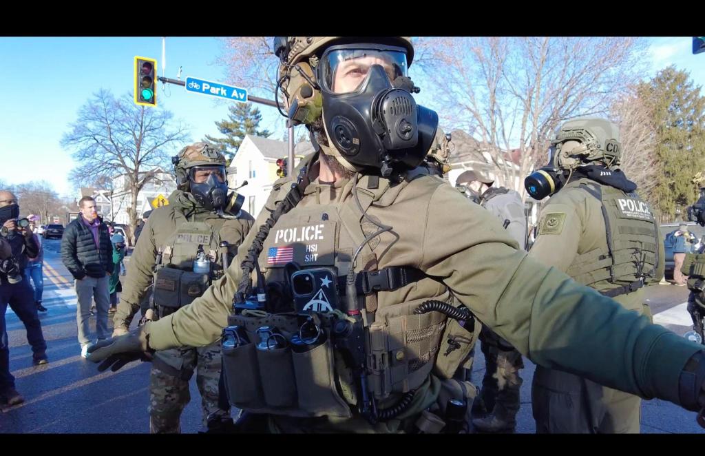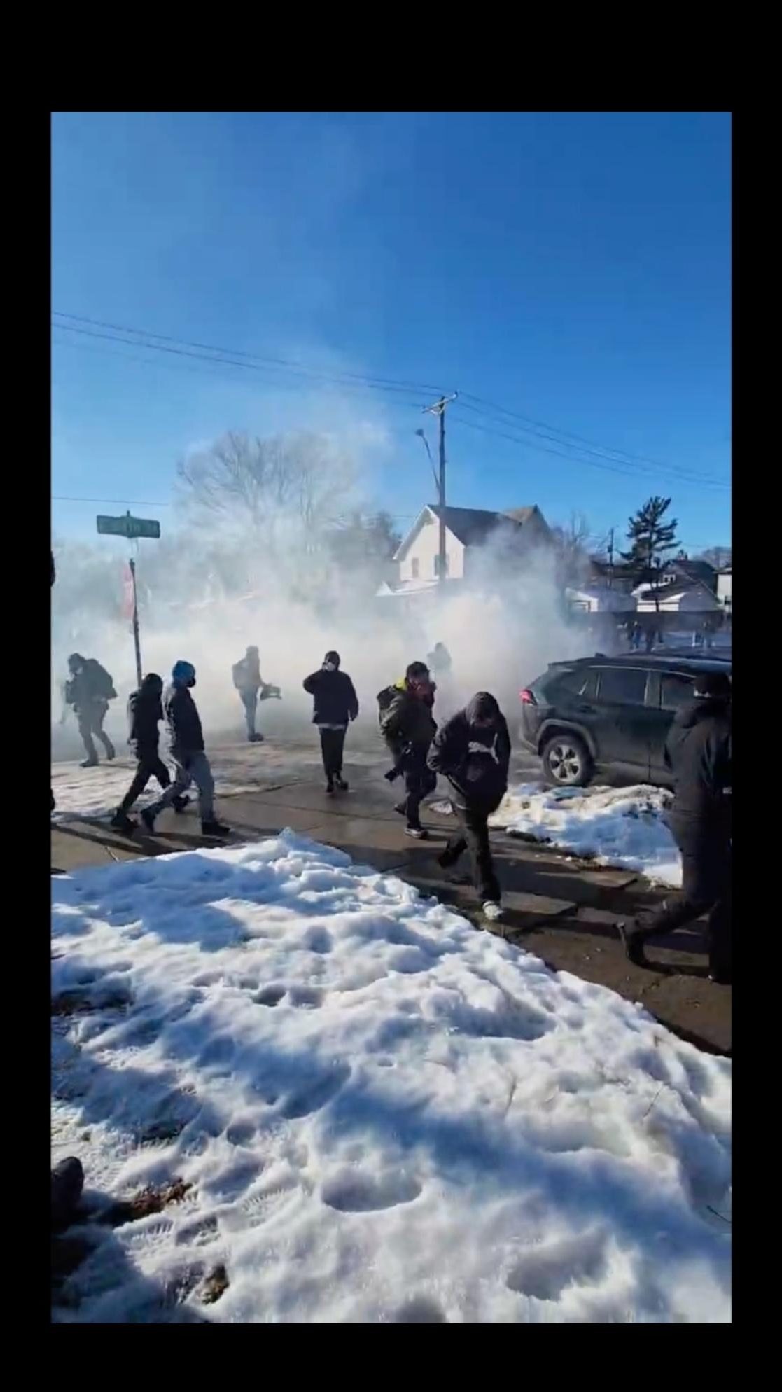 Almost immediately after that, the dispatcher on the Signal call directed folks to 34th and Park Ave. We parked a block north of the intersection and joined a rapidly growing gathering of comrades, neighbors, and ICE. There were at least 30 ICE agents standing around telling people not to stand somewhere, or to “get back”. It was absolutely stupid and unorganized. At the time I kept wondering what they were planning on doing. Now, I am fairly certain that they had no plan at all. After ICE stole Aliya out of her car, ICE remained in the intersection shooting paintballs at our feet, throwing flash bangs and tear gas. People kicked the teargas back at ICE, yelling at them to get tf out of their neighborhood. After maybe 15 minutes of that, ICE slowly left 34th and Park, and split up between the two intersections a block east and west of there.