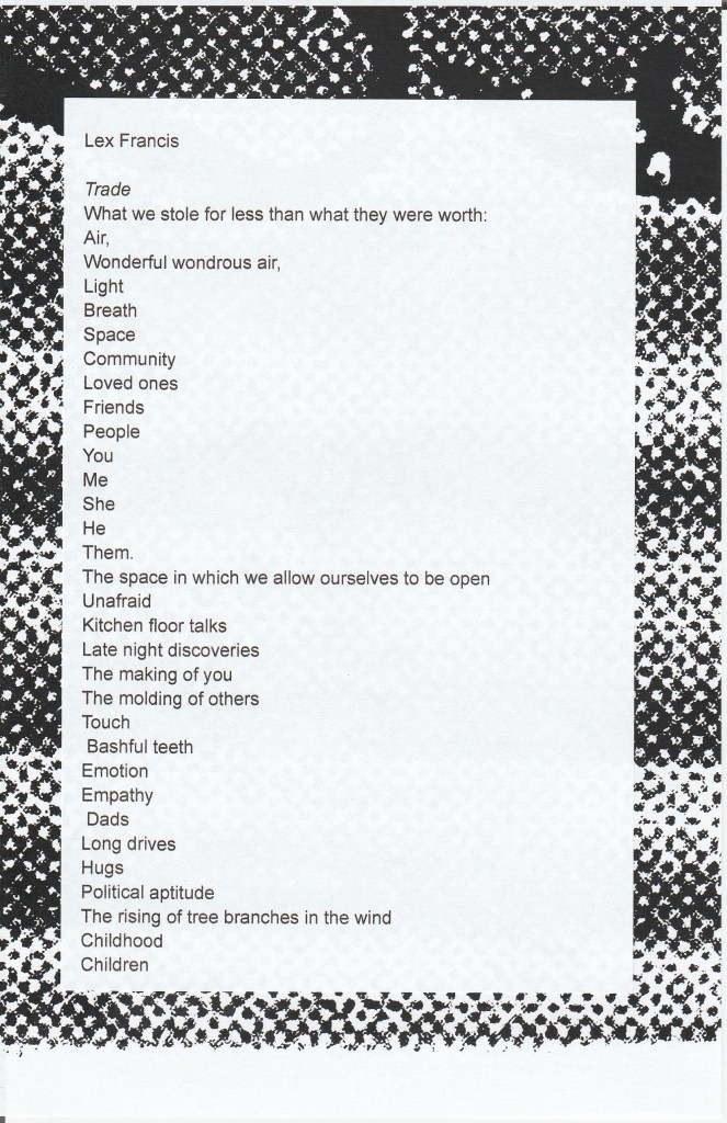 Poet Feature:Lex FrancisTrade, and Masque @ladygravy_